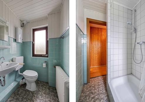 Beheizt wird das Haus bislang noch über eine Ölzentralheizung. Die Warmwasseraufbereitung erfolgt dezentral über Durchlauferhitzer beziehungsweise über ein Untertischgerät.