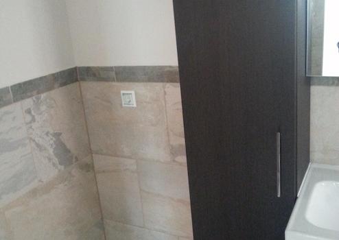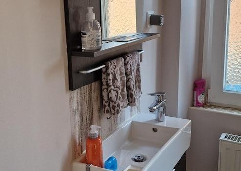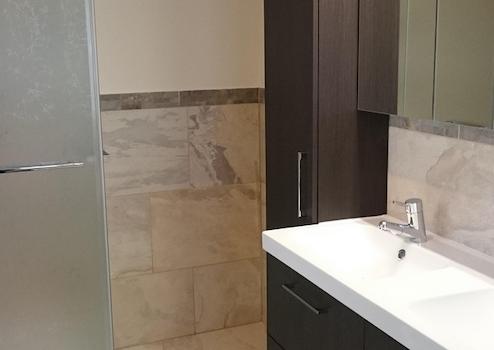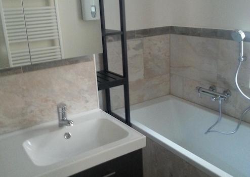- zeitgemäßes Badezimmer ohne WC mit hoher Dusche und Badewanne