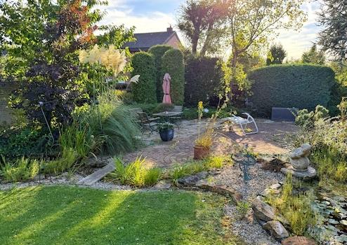 - hochwertige Gartengestaltung mit u. a. Teich-/Bachanlage