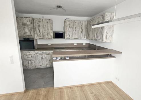 In der Wohnung ist eine offen gestaltete Einbauküche vorhanden. Das Bad der Wohnung verfügt über eine Acrylbadewanne und eine Dusche. Die Dusche verfügt über eine Duschkabine, nicht nur über einen Vorhand.