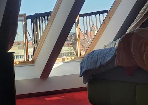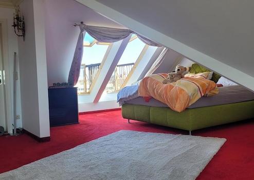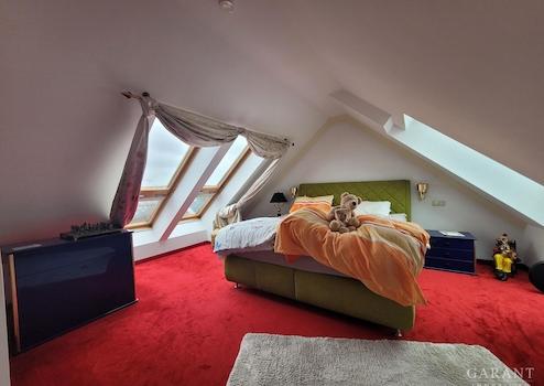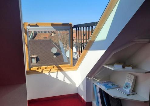 Neben dem Bett befinden sich zwei Balkonfenster die ruck zuck die dortige Dachschräge zu einem Ausstell-Balkon mit herrlichem Weitblick werden lassen kann.