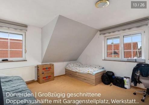 Die Immobilie befindet sich in der beliebten Gemeinde Dörverden (PLZ 27313) im Landkreis Verden in Niedersachsen. Eingebettet in die naturnahe Mittelweser-Region und nur wenige Minuten südlich von Verden gelegen, verbindet diese Lage ruhiges Wohnen mit guter Anbindung. Die Nähe zur Weser sowie zur Bundesstraße B 215 ermöglicht sowohl entspanntes Wohngefühl als auch unkomplizierte Mobilität. Einkaufsmöglichkeiten, Schulen sowie öffentliche Verkehrsmittel sind im Ort vorhanden – ideal für Familien oder Pendler.“