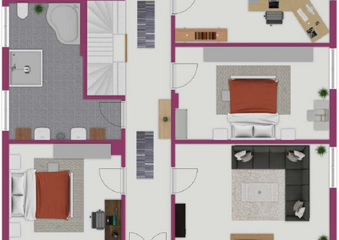 Das Wohnhaus erstreckt sich über drei Etagen und eignet sich sowohl für Familien als auch für Mehrgenerationenwohnen oder eine Kombination aus Wohnen und Arbeiten. Helle Wohnräume, zwei Tageslichtbäder, mehrere Schlafzimmer und ein Kamin sorgen für eine angenehme Wohnatmosphäre. Ein Balkon im Obergeschoss sowie eine Terrasse im Erdgeschoss bieten einen schönen Ausblick ins Grüne.