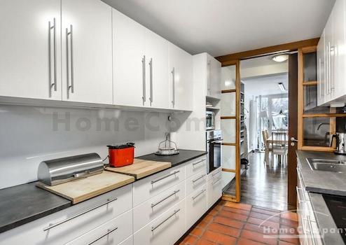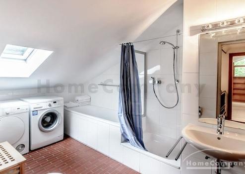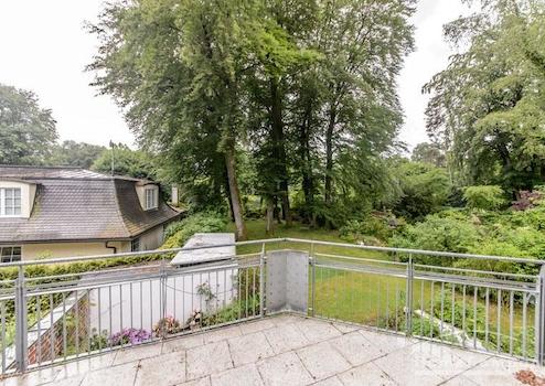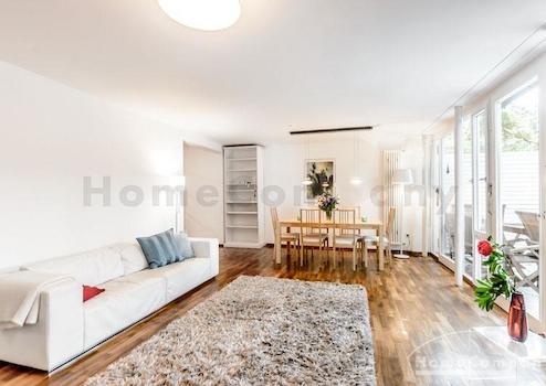 Lichtdurchflutete möblierte 5-Zimmer-Wohnung über 2 Etagen in Traumlage in Solln, Prinz Ludwigshöhe. Ruhig und grün in einem Zweifamilienhaus. Die große Dachterrasse bietet einen tollen Blick in den schönen Garten mit altem Baumbestand. Die Wohnung ist hochwertig möbliert und renoviert. Lichtdurchflutete, wohl proportionierte Räume bestimmen die Wohnatmosphäre. Der große Wohn-/Essraum mit bodentiefen Türen zur Terrasse ist klar und modern mit weißem Sofa und schönem Esstisch möbliert. Die Wohnung verfügt über vier getrennte Schlafmöglichkeiten: Ein Schlafzimmer mit Doppelbett, ein weiteres mit Französischem Bett. Beide Räume haben große Einbauschränke. Die zwei weiteren Zimmer können beide sowohl als Gäste-, wie auch als Arbeitszimmer genutzt werden. Hier gibt es komfortable Schlafsofas und Schreibtische. Die moderne Einbauküche ist perfekt ausgestattet mit Induktionsherd, elektrischem Backofen, Spülmaschine, Mikrowelle und kleinem Frühstücksplatz. Außerdem bietet eine praktische Kammer, hier steht die große Kühl-Gefrierkombination, zusätzlichen Stauraum. Waschmaschine und Trockner vorhanden. Des Weiteren gibt es in der Wohnung zwei Bäder, eines mit Badewanne, eines mit Dusche, beide mit Tageslicht.