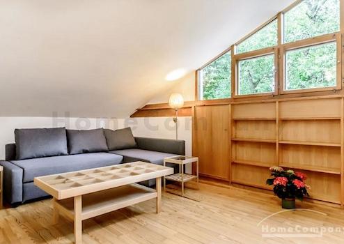 Hübsches möbliertes 1-Zimmer-Apartment mit 30 m² Dachterrasse in Milbertshofen. 3. Etage ohne Lift, Wohn-/ Schlafraum mit komfortablem Stapelbett, das bei Bedarf als Doppelbett genutzt werden kann. Kleine separate ...