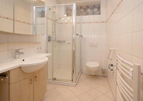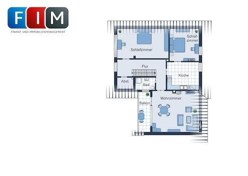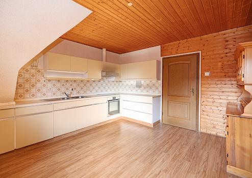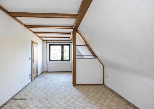 Auch das Obergeschoss überzeugt durch eine durchdachte Aufteilung. Zwei Schlafzimmer, eine große Wohnküche sowie ein Wohnzimmer mit Kamin und Balkonzugang schaffen ein behagliches Ambiente. Ein saniertes Duschbad (2015) und ein Abstellraum runden das Raumangebot ab.
