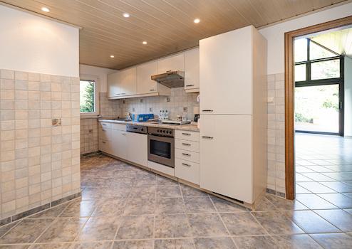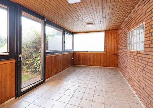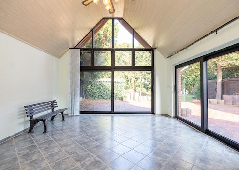 Im Anbau befindet sich ein großer Wintergarten mit Fußbodenheizung, eine Arbeitsküche und ein Vorraum mit Gäste-WC – ideal für Familienfeste oder als separater Aufenthaltsbereich.