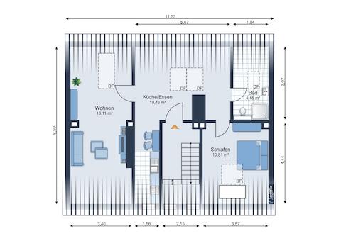 +++ ca. 53m³ Wohnfläche
