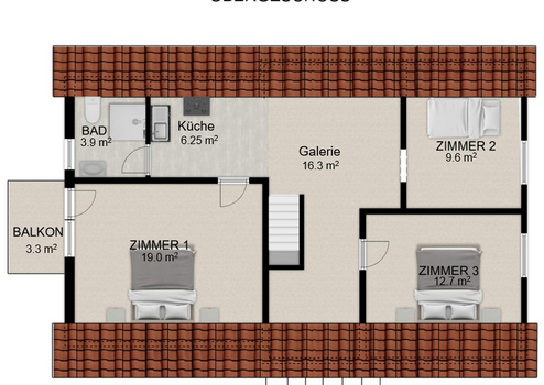 • Drei Badezimmer und separates Gäste-WC für Komfort und Privatsphäre.