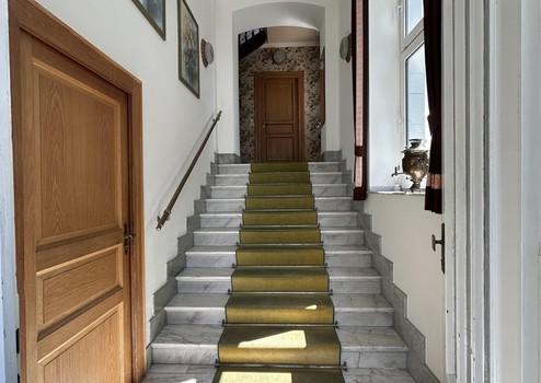 Im Eingangsbereich sind die Marmorstufen und Messinghandläufe größtenteils noch im Originalzustand.