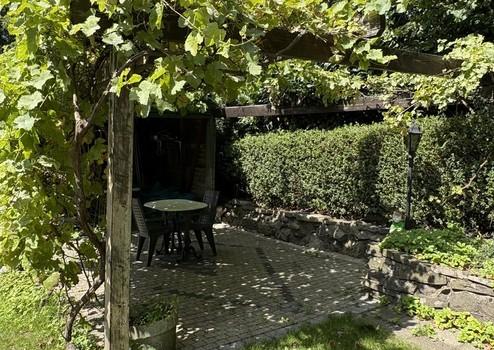 Die solide Bausubstanz bietet eine hervorragende Grundlage und viel Potenzial für eine vielfältige Nutzung. Der Garten lädt zum Verweilen ein und auf der Terrasse findet man unter einem Dach aus Weinreben ein schattiges Plätzchen.