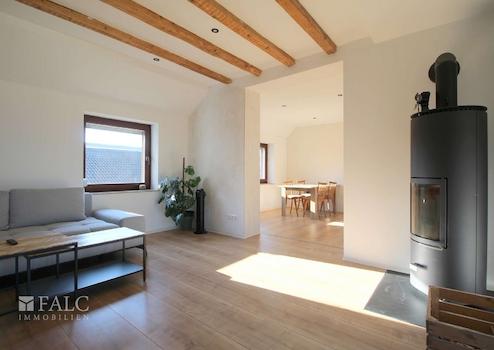 Durch die jetzigen Eigentümer fand in den Jahren 2019 und 2020 eine umfangreiche Teilsanierung statt. Die großzügigen Räume sind lichtdurchflutet und schaffen eine einladende Atmosphäre. Die Verwendung von hochwertigen Materialien verleiht dem Haus einen warmen und natürlichen Charakter.