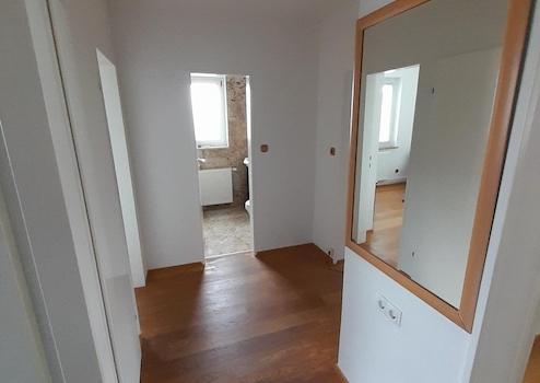 Diese schöne, modernisierte Wohnung im zweiten Stock besticht durch ihre gehobene Innenausstattung. Sie verfügt über drei hübsche Zimmer, eine Einbauküche mit modernen Elektrogeräten und Granitplatte, einen Abstellraum und ein Tageslicht-Wannenbad. Hier wurde das edle Material Granit meisterhaft mit Holzdielen aus Eiche kombiniert. Zudem wurden hochwertige Armaturen verbaut. Hervorzuheben ist, dass eine Loggia vorhanden ist, auf der Sie in Ruhe frühstücken und den Blick ins Grüne genießen können. Ihr Auto können Sie direkt neben dem Haus auf dem dazugehörigen privaten Parkplatz mit Sondernutzungsrecht "Stellplatz" bequem parken. Zwei Kellerräume und eine Dachkammer gehören ebenfalls dazu (Teilungserklärung). Sie bieten ausreichend Stauraum. Für den Transport von Einkäufen und kleinen Lasten mit einem Gewicht von bis zu 100 kg steht im Haus ein kleiner Lastenaufzug zur Verfügung, der jedoch nicht für den Transport von Personen genutzt werden darf.