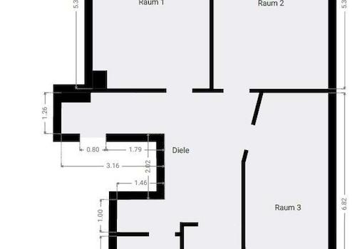 Die Wohneinheit mit einer Wohnfläche von ca. 82,07 m² bietet eine perfekte Mischung aus komfortablem Wohnen und klassischem Altbauflair. Die Wohnung befindet sich im 1. Obergeschoss des Gebäudes und überzeugt durch eine durchdachte Raumaufteilung. Große Fenster sorgen für viel Tageslicht und schaffen eine angenehme Wohnatmosphäre.
