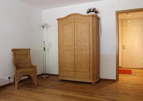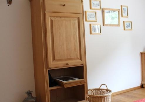 Im Schlafzimmer gibt es zwei Bauernschränke und es ist ausreichend Platz für ein großes Doppelbett.