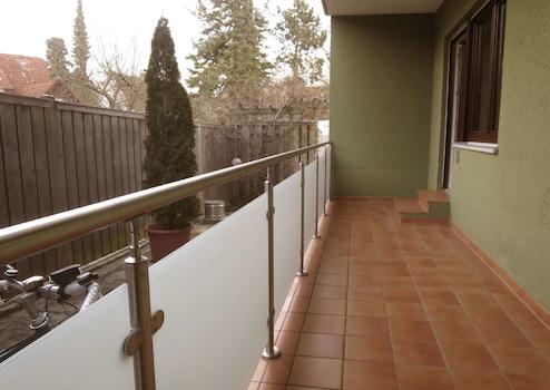 Die große Balkontüre und die großen Fenster lassen hier viel Licht in die Wohnräume herein. Vom Wohnzimmer aus begehen Sie Ihren geräumigen Balkon. Genießen Sie hier nach anstrengenden Arbeitstagen die Sonne und den Blick in die umliegenden Gärten.