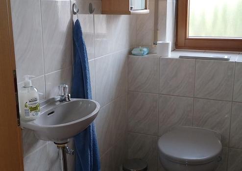 Im Untergeschoss des Hauses befindet sich die Einliegerwohnung mit Schlafzimmer, Badezimmer, Flur und Wohnküche. Sie ist über den Heizraum mit separatem Zugang erreichbar. Des weiteren befinden sich im Untergeschoss ein Kellerraum, die Waschküche, der Heizraum und ein Öllager. Das Haus kann wahlweise beheizt werden mit einer Holzzentralheizung (installiert 2006) oder einer Ölzentralheizung (Baujahr 1994). Für Warmwasser im Sommer steht überdies noch eine Brauchwasserwärmepumpe zur Verfügung.