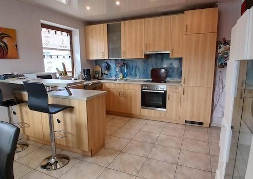 Balkon, Terrasse, Garten, Keller, Vollbad, Duschbad, Einbauküche, Gäste-WC, Fliesen