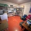 •Die Bühne ist noch nicht ausgebaut und bietet derzeit reichlich Stauraum