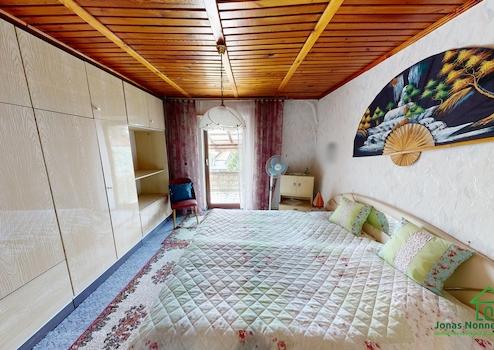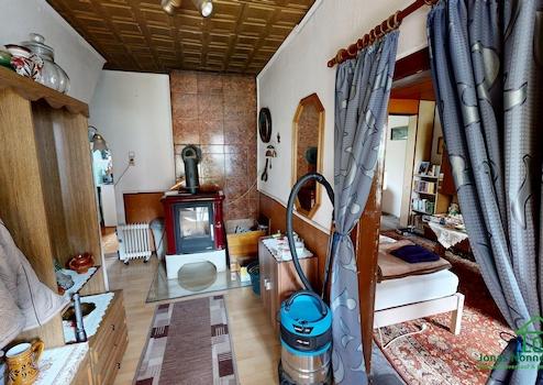 Das Haus ist in massiver Bauweise errichtet und verfügt über ein Satteldach mit Betondachsteinen sowie einen Teilkeller. Die Raumaufteilung ist klassisch und funktional. Im Erdgeschoss erwartet Sie unter anderem ein Wohnzimmer, eine separate Küche mit vorhandener Einbauküche sowie ein Badezimmer mit Badewanne. Die Innenausstattung entspricht überwiegend dem Stand der 90er Jahre bzw. dem Ursprungsbaujahr – eine umfassende Sanierung ist einzuplanen.