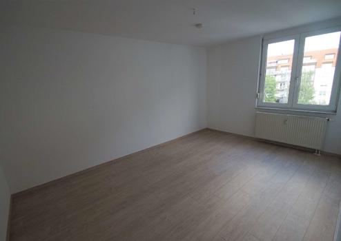Die modern geschnittene Wohnung befindet sich in der dritten Etage eines großen Mehrfamilienhauses in ruhiger Wohnlage von Paunsdorf. Diese kleine Anliegerstraße befindet sich nahe dem Verkehrsknotenpunkt Theodor-Heuss-Straße und Riesaer Straße.