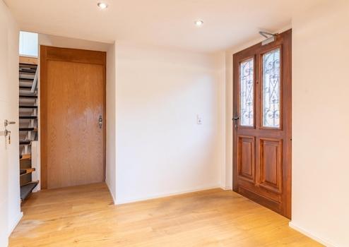 Die linke Haushälfte wurde im Jahr 2018 umfassend saniert (Investitionsvolumen ca. 100.000 €). Dabei wurden Böden, Decken, Bad und Küche erneuert, sämtliche Rohrleitungen ausgetauscht und eine moderne Holzpelletheizung mit Solarthermie-Unterstützung für Heizung und Warmwasser im gesamten Haus installiert. Zudem wurde die Elektroinstallation größtenteils erneuert und ein Glasfaseranschluss vorbereitet. Die Deckenhöhen liegen hier teils zwischen 2,05 m und 2,20 m.