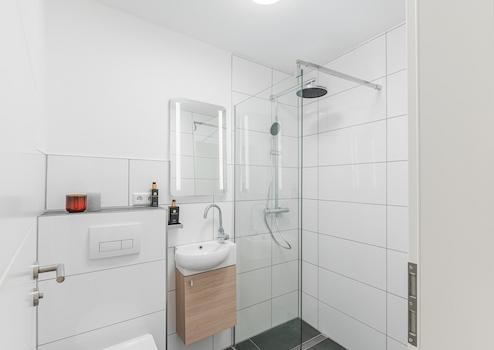 •Wohnung B: ausgestattet mit einer begehbaren Dusche – modern und komfortabel.
