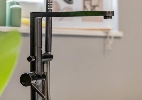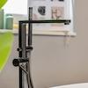 - Luxuriöses Badezimmer mit freistehender Badewanne, ebenerdiger Walk-in-Dusche und stilvollen Armaturen