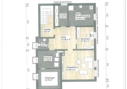 4 Räume im Untergeschoss haben normales Tageslicht, da die Fenster sich oberhalb des Erdniveaus befinden;
