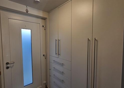 Die gesamte Wohnung ist mit einem kabelgebundenen Loxone-Smart-Home-System ausgestattet. Beleuchtung, Jalousien, Markise und Heizung lassen sich automatisiert, per Taster oder per App steuern.