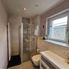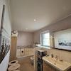 Das Obergeschoss beherbergt drei helle Schlafzimmer und ein modernes Badezimmer, das mit einer Badewanne, einer separaten Dusche und einem Waschbecken mit Spiegelschrank ausgestattet ist.