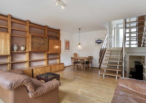 Auf der Eingangsebene erwartet Sie die einladende Diele, ein Gäste-WC und die geräumige Küche. Das sehr gut belichtete Wohnzimmer inkl. Essbereich befindet sich auf Gartenniveau.