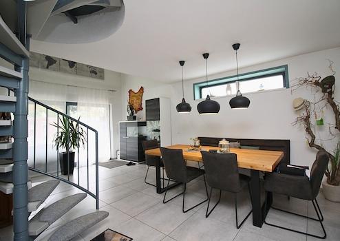 Das Haupthaus wurde ebenfalls 2020 vollständig saniert und präsentiert sich in einem modernen, gepflegten Zustand. Im Erdgeschoss empfängt Sie ein offener Essbereich mit Blick in den Garten sowie eine großzügige, moderne Küche, die keine Wünsche offenlässt. Das gesamte Haus ist mit Fußbodenheizung ausgestattet und bietet ein angenehmes Wohnklima.