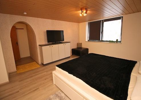 - Geräumiger Keller mit großen Fenstern und zusätzlichem Gästezimmer