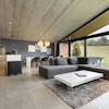 Beim Betreten dieser luxuriösen, ebenerdigen Villa werden Sie von der großen Glasfront auf der Rückseite mit fantastischem Blick auf die Skipiste überrascht. Über die geräumige Diele mit Garderobe und zusätzlichem Abstellraum gelangen Sie ins Wohnzimmer. Das großzügige Wohnzimmer verfügt über eine luxuriöse offene Küche sowie eine komfortable Sitz- und Essecke. Die Sitzecke ist mit einem stimmungsvollen Gaskamin und einem TV ausgestattet. Die griffl ose Küche besitzt eine Insel, Einbaugeräte (Bauknecht) und viel Stauraum. Durch die Schiebetür gelangen Sie auf die überdachte Terrasse mit unverbauter Aussicht und direkter Anbindung an die Skipiste.