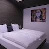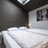 Schlafzimmer 2 verfügt über ein öffnbares Dachfenster, Nachttische und eine eingebaute Schrankwand.