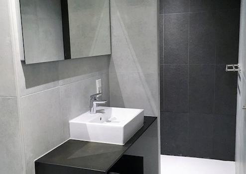 Es gibt außerdem ein zusätzliches Badezimmer mit Design-Waschbecken, zusätzlichem WC und bodengleicher Dusche.