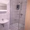 Renovierte Wohnung mit Küchenzeile und Bad mit Dusche.