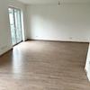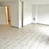 Die Wohnräume sind mit glatten Vliestapeten tapeziert und weiß gestrichen.