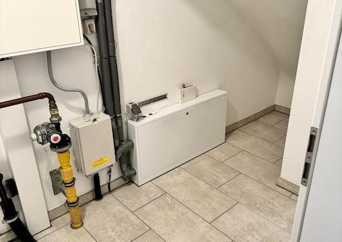 Das Erdgeschoss sowie das große Badezimmer im 1. Obergeschoss sind gefliest und werden mittels Fußbodenheizung geheizt. Die restlichen Wohnräume verfügen über Heizkörper.