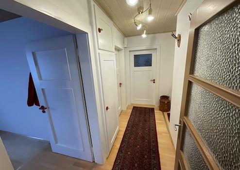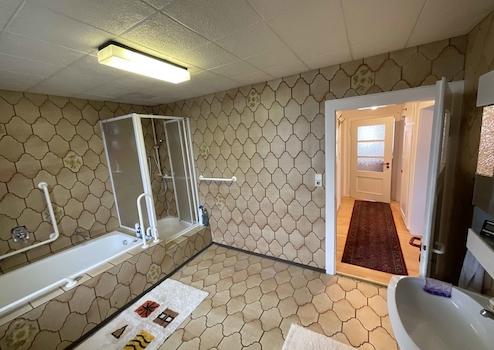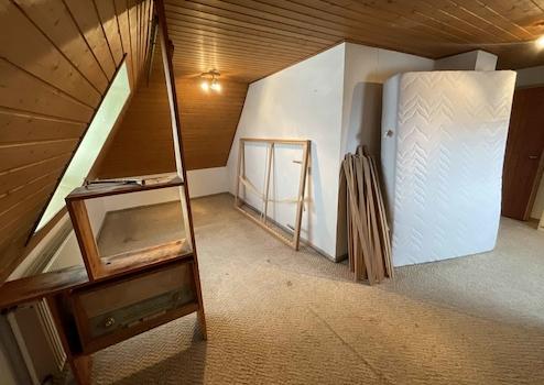 Über wenige Stufen von der Straße aus gelangen Sie in den Eingangsbereich des Wohnhauses. Ein Windfang schützt den Treppenhausbereich angenehm vor Wind und Wetter. Im Erdgeschoss des Wohnhauses kann eine eigene Wohneinheit genutzt werden. Diese verfügt über zwei Zimmer, WC, Bad und Küche (im klassischen Haus) und einen sehr großen Wohnbereich (im Anbau). Von hier aus ist ein Austritt in den Garten gewährleistet. Im Obergeschoss befinden sich grundsätzlich die gleichen Zimmer, wobei das zweite Zimmer eine große Wohnküche ist. Hier ist anstatt einer Küche (wie im EG) nun ein größeres Badezimmer. Im Anbau sind zwei Räume entstanden. Nachdem der Dachspeicher betreten wurde, erkennt man die wohnliche Holzpaneel Wand- und Deckenverkleidung. Hier sind diverse Räume zur Lagerung vorhanden. Selbst ein Duschbad ist gegeben. Einen Austritt auf den Anbau als weitere Terrasse ist hier möglich; es ist aber kein entsprechendes Geländer vorhanden. Das Wohnhaus ist komplett unterkellert. Die Zentralheizung stammt aus dem Jahr 2024. Eine Solar- oder PV-Anlage sollte noch installiert werden, um den gültigen Anforderungen nachzukommen. Insgesamt handelt es sich um ein Wohnhaus mit viel Potential in einer tollen und ruhigen Wohngegend.