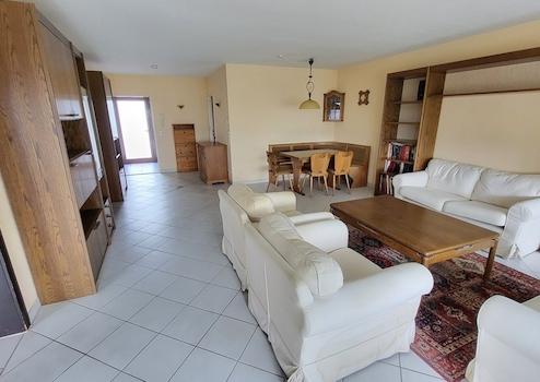 Sie erreichen die hier angebotene Wohnung bequem über den Aufzug und gelangen über den Laubengang zum Eingang der hellen und großzügig geschnittenen Wohnung. Nach Betreten der Wohnung befinden Sie sich zunächst im Windfang, von hier aus befindet sich linker Hand das separate WC mit Toilette und Waschbecken. Dieses ist in den Sanitär- und Fliesenfarben Weiß ausgestattet und deckenhoch gefliest. Eine Belüftung ist bequem über das Fenster möglich. Vom Windfang gelangen Sie über eine Türe in die weiteren Räume. Gleich linker Hand befindet sich die Arbeitsküche, welche bereits mit einer Einbauküche ausgestattet ist. Auch ein Abstell-/Vorratsraum für die Lagerung ist von hier aus zugänglich. Der großzügige Wohn- und Essbereich bildet das Zentrum der Wohnung und bietet ausreichend Platz für alle Familienmitglieder, um gemeinsame Zeit für Mahlzeiten und Aktivitäten zu genießen. Verschiedenste Einrichtungsvarianten sind hier vorstellbar. Die Böden in allen Räumen sind mit Fliesen ausgelegt und beweisen auch seine Robustheit im turbulenten Familienalltag. Die großen Fensterfronten, nahezu über die komplette Breite, sorgen für eine helle und freundliche Atmosphäre in der gesamten Wohnung. Der überdachte Süd-Westbalkon, welche sowohl vom Wohnbereich als auch vom angrenzenden Zimmer zu betreten ist, bietet den idealen Platz zum Entspannen und den Blick in die Ferne zu genießen. Vom Wohnbereich aus gelangen Sie über einen offenen Rundbogen in einen relativ großen Raum, welcher bisher als Büro genutzt wurde. Idealerweise bauen Sie hier eine Zimmertüre ein, so dass Sie einen weiteren Schlafraum; egal ob als Schlaf- oder Kinderzimmer.