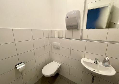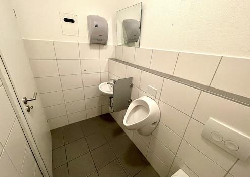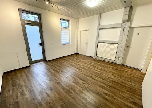Im Erdgeschoss befinden sich zwei helle Gewerbeeinheiten mit jeweils etwa 60 m² Fläche. Großzügige Fensterfronten sorgen für eine hervorragende Sichtbarkeit und machen die Räume ideal für Büro-, Praxis- oder Dienstleistungszwecke. Über den Innenhof ist zudem die ca. 70 m² große Werkstatt zugänglich.