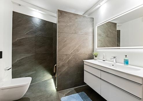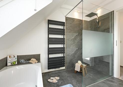 • Zwei komplett sanierte Bäder aus hochwertigen Materialien mit 1 Badewanne und 2 Duschen