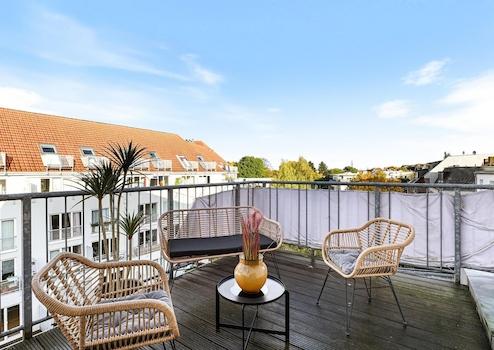 Auf rund 170 m² Wohnfläche erwarten Sie fünf lichtdurchflutete Zimmer, zwei wunderschöne Dachterrassen mit Sonne von morgens bis abends, zwei top-sanierte Bäder, eine hochwertig ausgestattete Küche, die das Herz jedes Hobbykochs höherschlagen lässt, sowie die besonders gute Schallisolierung zu den Nachbarn und zur Straße durch die rückwärtige Lage.