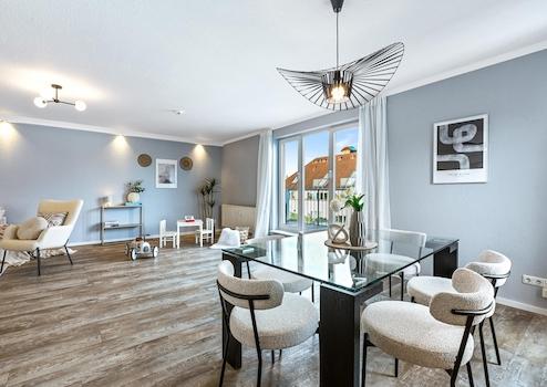 • Großzügiger Wohn- und Essbereich mit tollem Raumgefühl Dank bodentiefen Fenstern