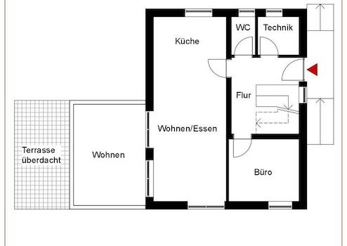 Ebenfalls im Erdgeschoss befinden sich ein weiteres Zimmer, ein Gäste-WC sowie der Technikraum.