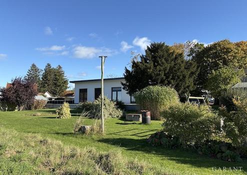 Ein wenig unscheinbar und mit ein bisschen Understatement kommt der 2018 erbaute Bungalow mitten im Naturpark Greifswalder Bodden daher. Leicht versteckt und nur durch einen Privatweg zu erreichen ist nicht für jedermann ersichtlich, was sich hier für ein Juwel versteckt. Durch die Ausrichtung und leichte Erhöhung des Gebäudes eröffnet sich dem Besitzer ein atemberaubender Blick über den Greifswalder Bodden - frei in die Natur. Von jedem Zimmer aus schauen Sie unverbaubar auf die Boddenlandschaft, das Wasser und auch die Rastplätze der Zugvögel. Nur 150 m zum Bodden wohnen Sie hier an der Waterkant!