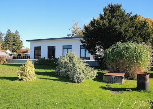 Ein wenig unscheinbar und mit ein bisschen Unterstatement kommt der 2018 erbaute Bungalow mitten im Naturpark Greifswalder Bodden daher. Leicht versteckt und nur durch einen Privatweg zu erreichen ist nicht für jedermann ersichtlich, was sich hier für ein Juwel versteckt. Durch die Ausrichtung und leichte Erhöhung des Gebäudes eröffnet sich dem Besitzer ein atemberaubender Blick über den Greifswalder Bodden, frei in die Natur. Von jedem Zimmer aus schauen Sie unverbaubar auf die Boddenlandschaft, das Wasser und auch die Rastplätze der Zugvögel. Nur 150 m zum Bodden wohnen Sie hier an der Waterkant!