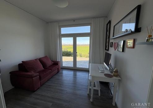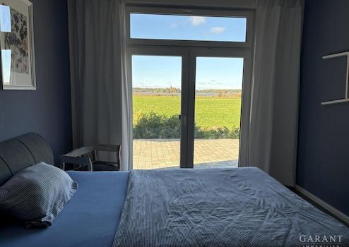 Ebenfalls zum Wasser offen ist das Kinderzimmer (Büro) und das Schlafzimmer, welches ein angegliedertes Ankleidezimmer hat. Ein großzügiges Bad mit Wanne, Walk-In-Dusche und WC runden das Objekt ab.